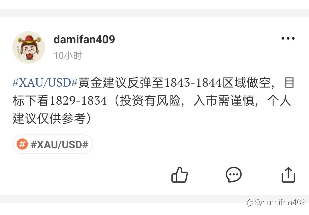 #XAU/USD#黄金建议1852附近做空,目标看1836-1842(投资有风险,入市需谨慎,个人建议仅供参考)