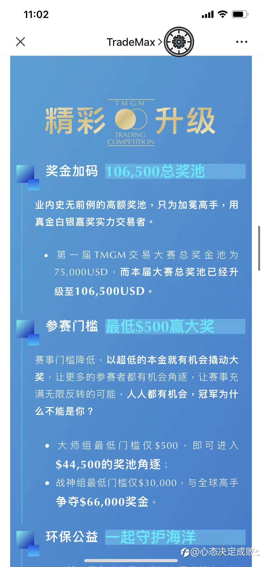 第一届TMGM交易大赛总奖金池为75,000USD,而本届大赛总奖池已经升级至106,500USD。