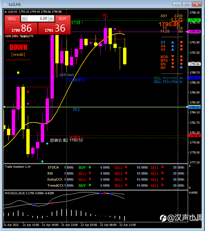 【2】在1782设置Sell Stop低位买跌,买跌止盈1774;