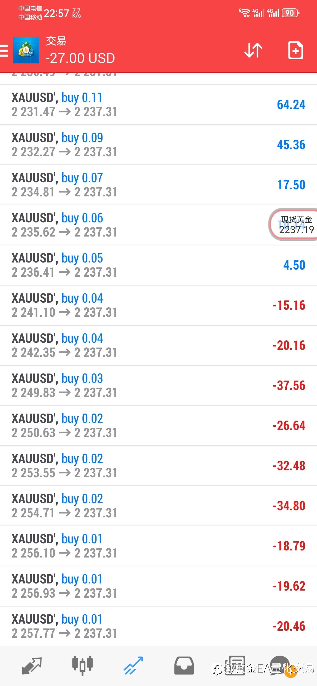 #XAU/USD#周五非农数据EA不停,当周25%