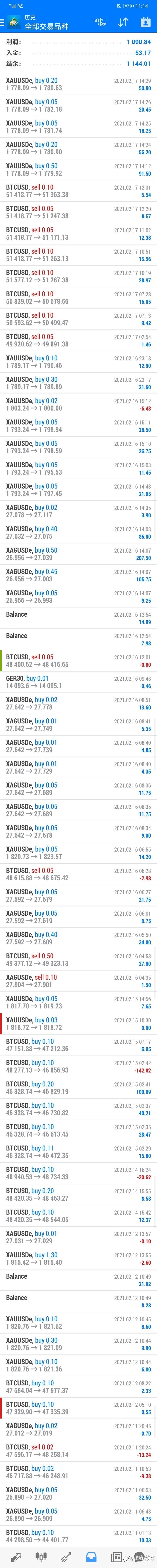 2月1日至2月6日,盈利1336.69,连续一个月,每日无亏损,每周有盈利。希望能保持下去。不贪心,不急躁。