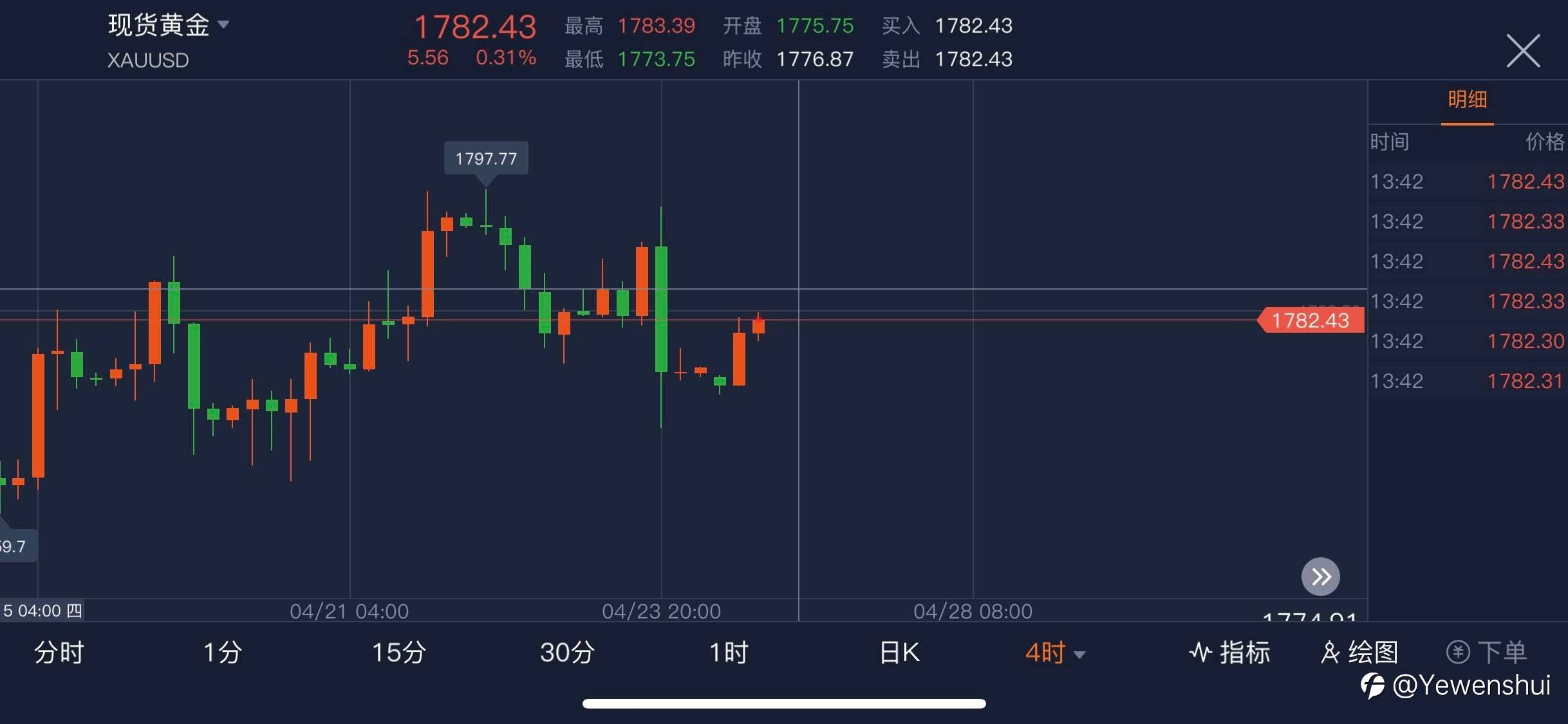 黄金继续持有多单.空仓的朋友今天可以在1775之上任何点位参与多单(1775-1780).目标1800附近.