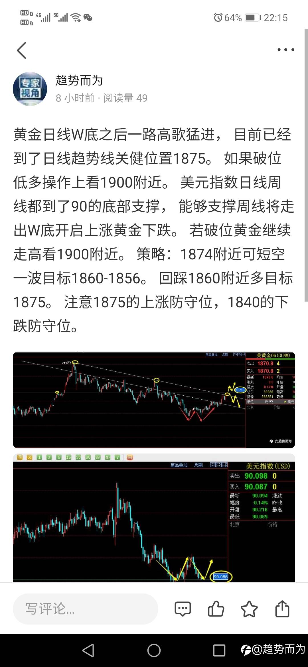 回踩1865附近多 止损1862下方目标1878-1890。