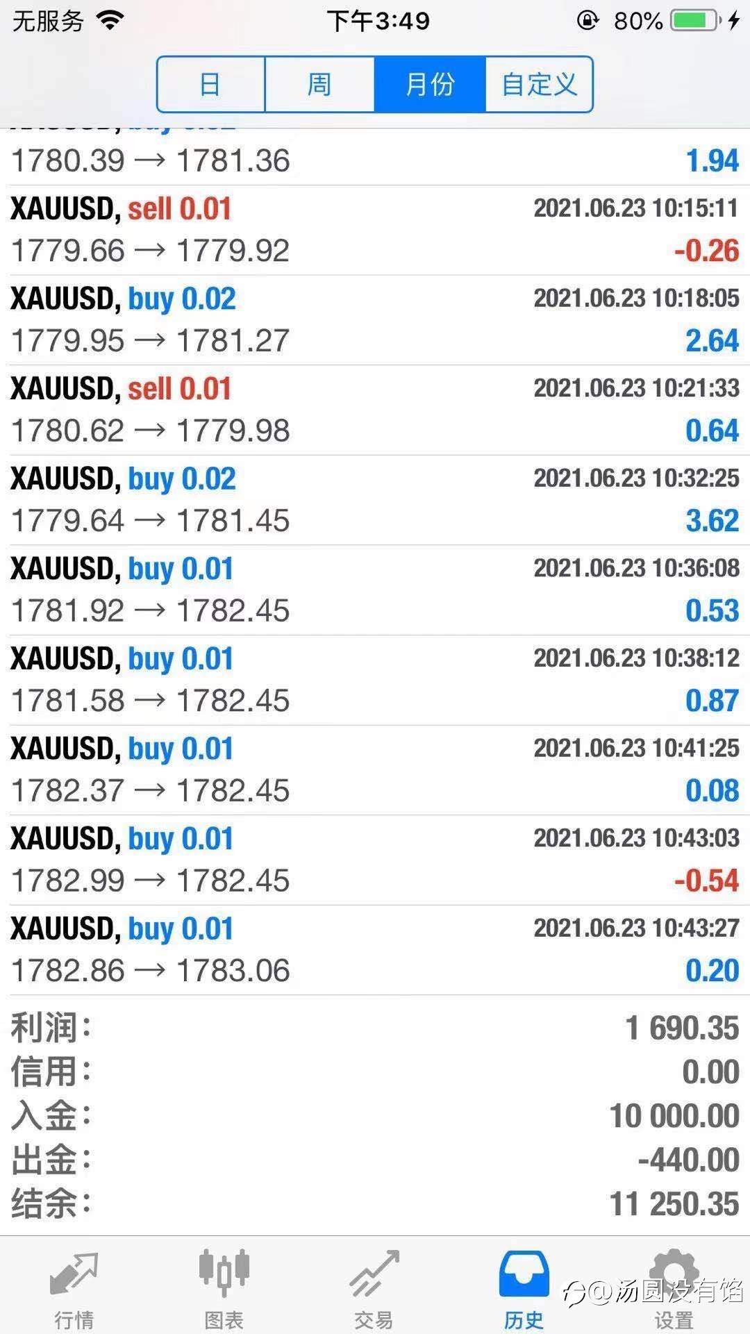 本月震荡黄金一万入金,0.01开仓!到目前的收益!