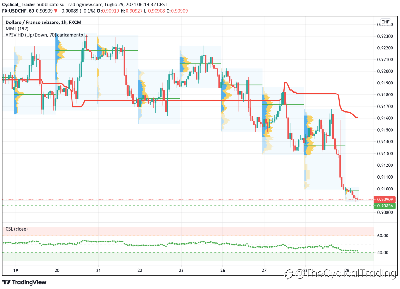Mi attendo un proseguimento del downtrend, il CSL è neutro, dubito troveremo un eccesso dove entrare Long, magari controlleremo il grafico a 15 minuti per cercare lì un eccesso di forza dove già ieri aveva dato un fantastico segnale Long chiuso in profitto.