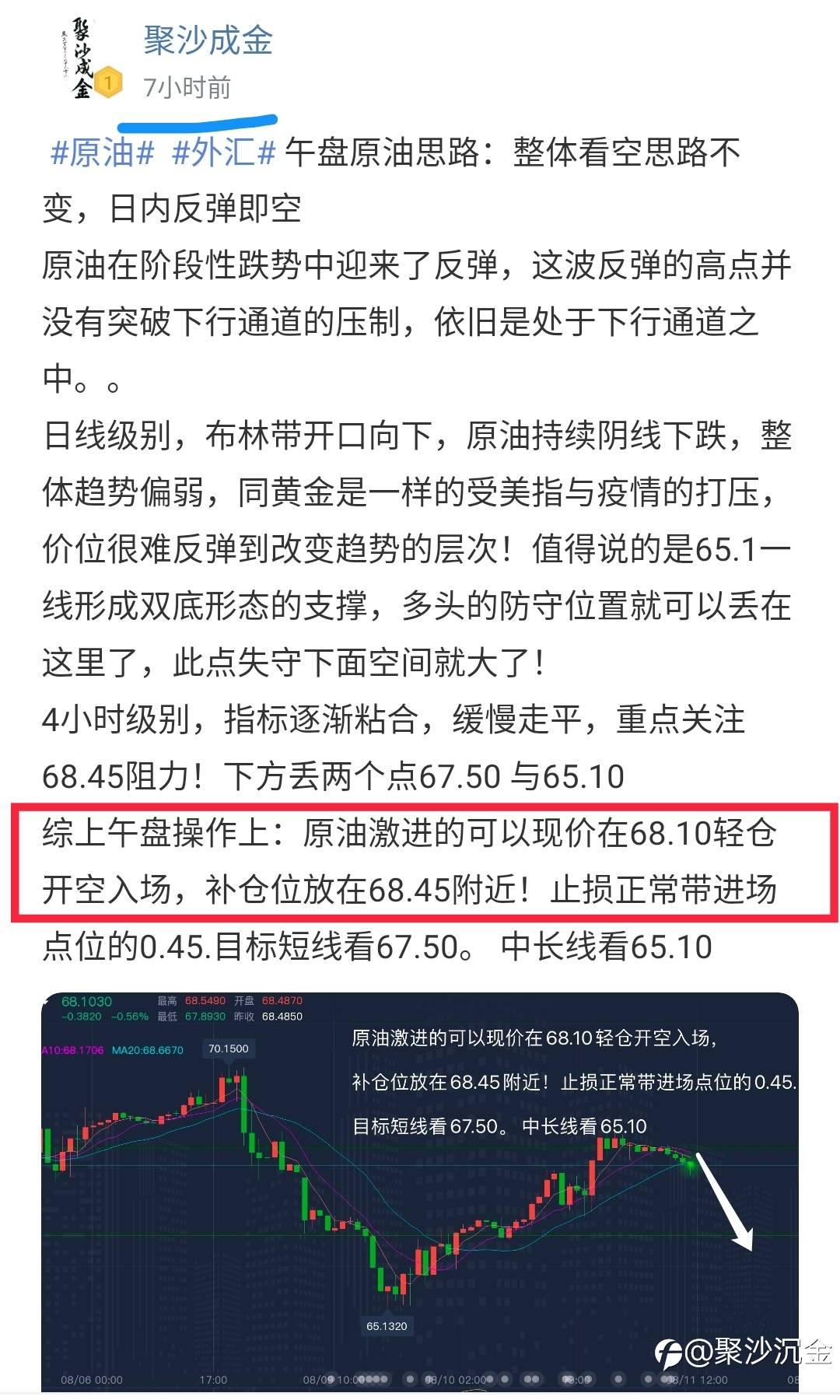 原油现价67.34,午盘布局的原油空单,抓短线的可以止盈离场。当前落袋800U上下!
