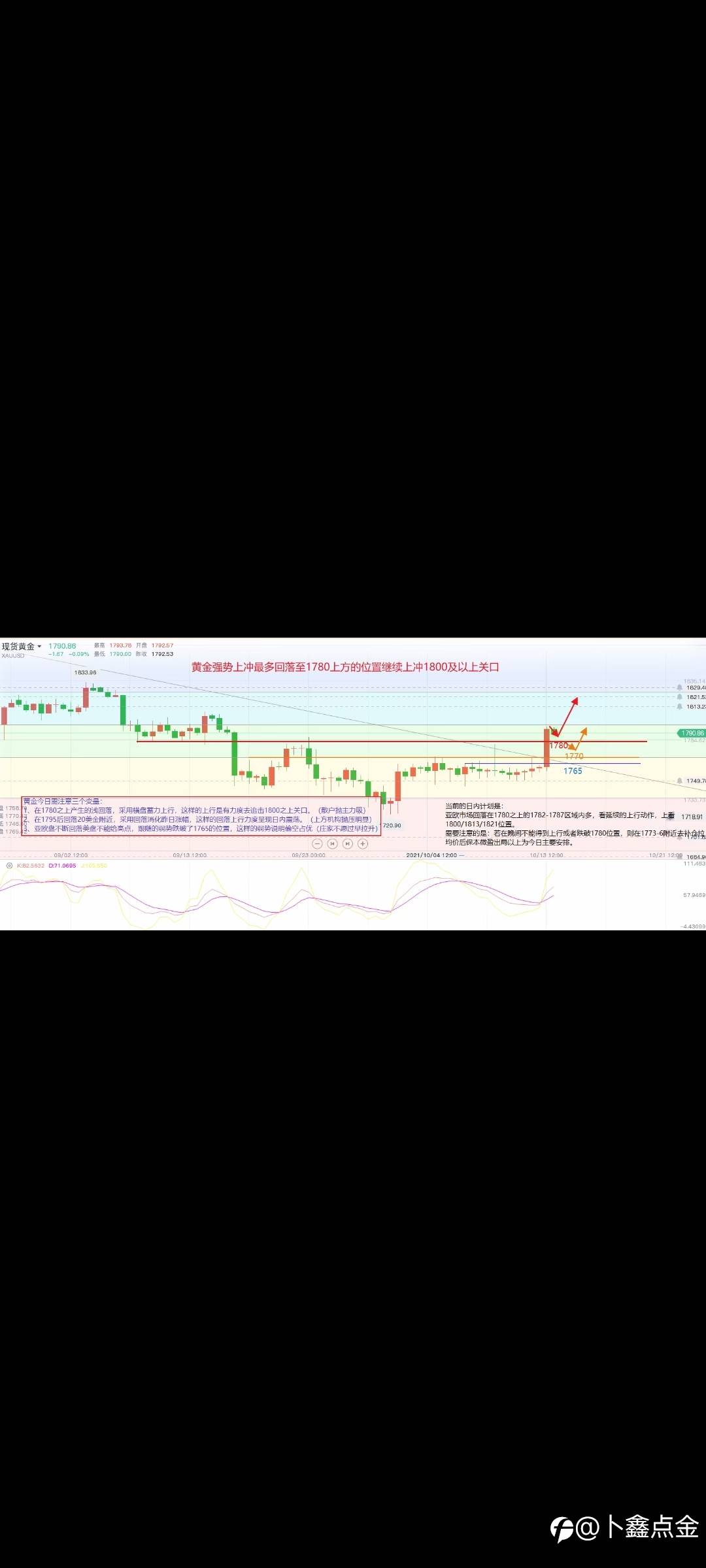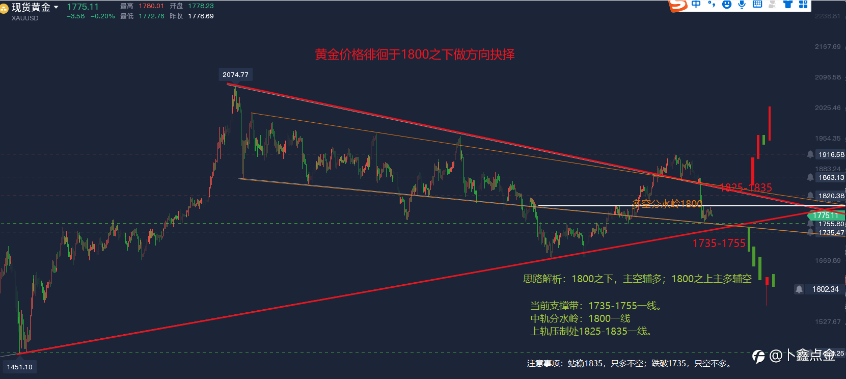 今日依旧在1795-1790分批看多,保护带1785/4位置,上至1810带保本损,继续上看1818-1830位置。
