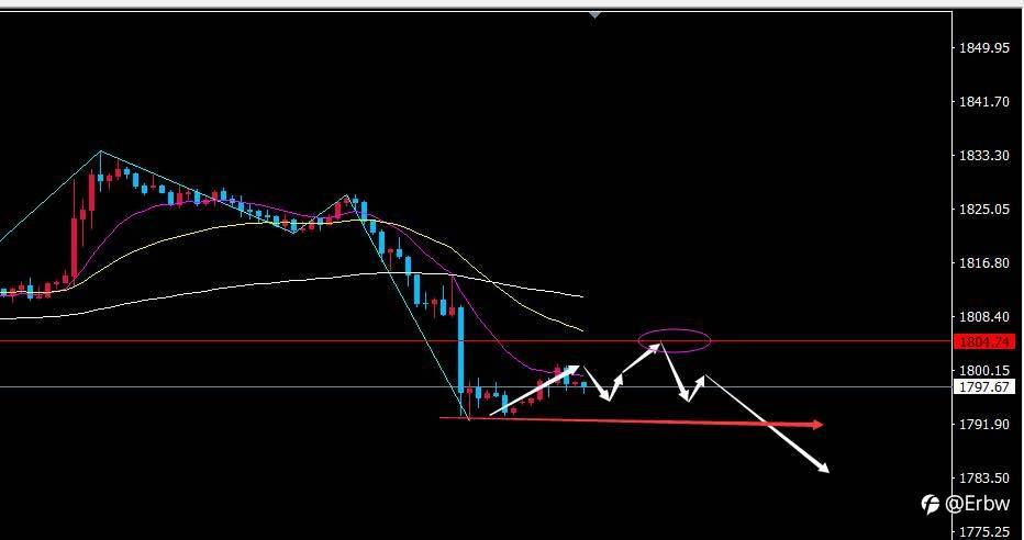 10/26黄金早上亚盘观点,黄金昨日几乎无力回撤给到了目标位置止盈,今日亚盘关注1807.5实体破位,反抽1807附近可空,等待7点和8点收线情况,在及时的布局(以上只代表个人观点,不构成交易依据,投资有风险,交易需谨慎)