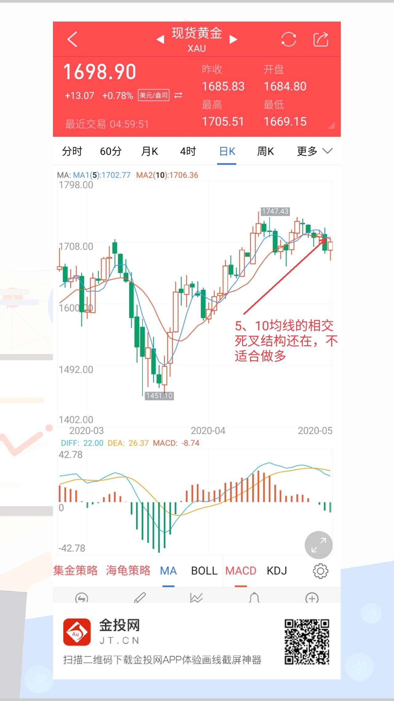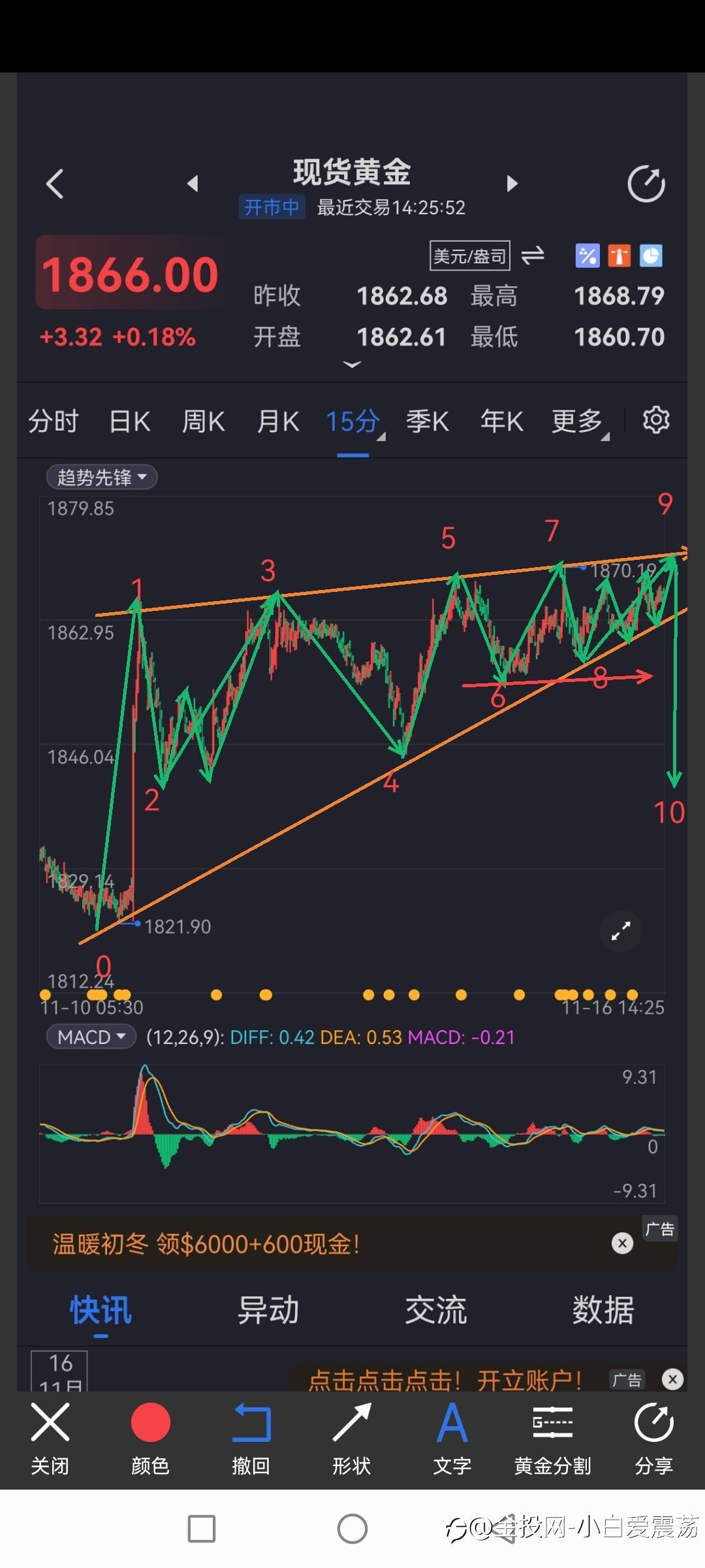 # 现货黄金#回调幅度的问题,如果再次给到1768左右再接空,激进也不能低于1762,但止损要放到1876,下面1842减仓,看1832,1818,至于下面1804不是极限看成极限,就算下面有空间,想就不要去想,具体这波下来能到哪,超过我的认识范围,所以没得明确点位,大体结构就是这样。围绕这个框架就行了。其实都是之前的思路,重复意义也不大