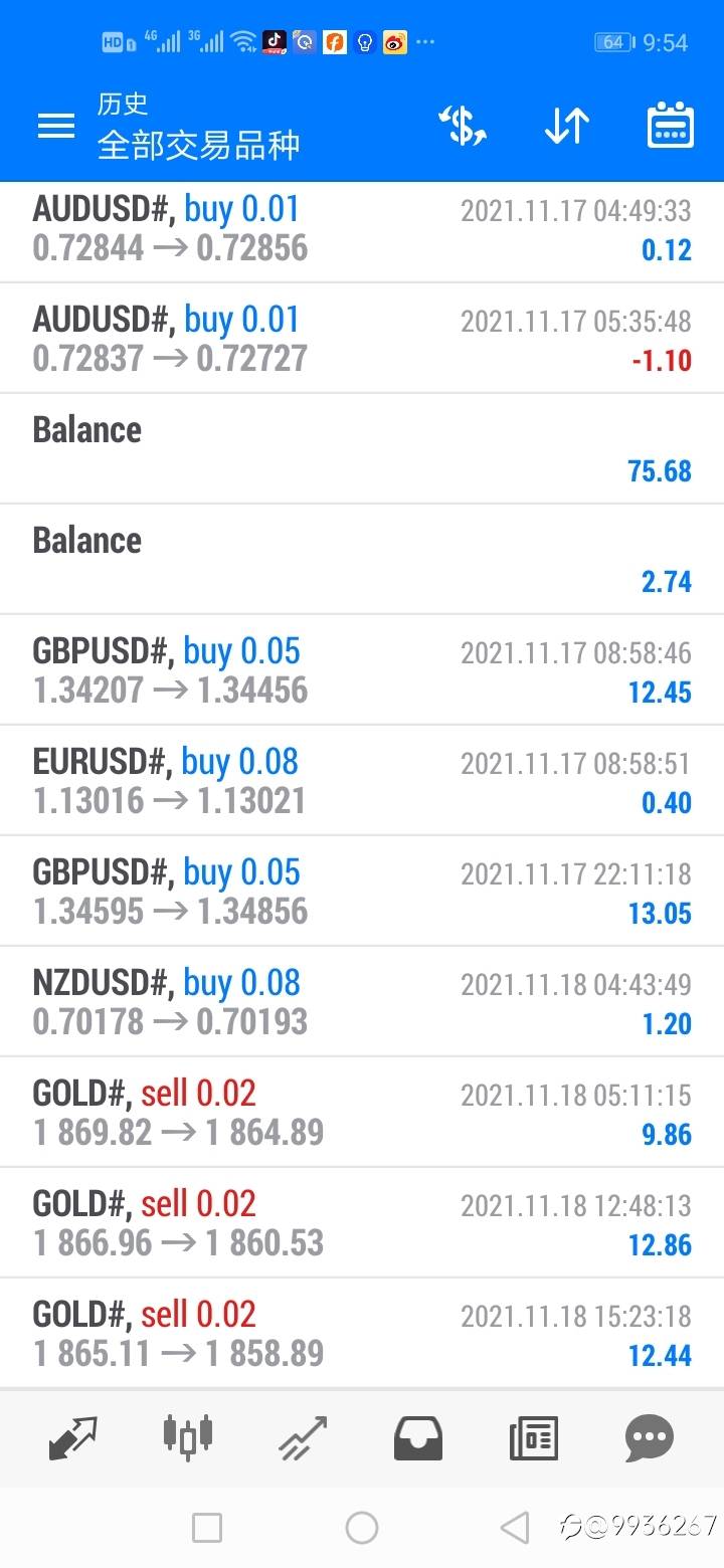 继续控制仓位!周五盈利五十美金!账户190