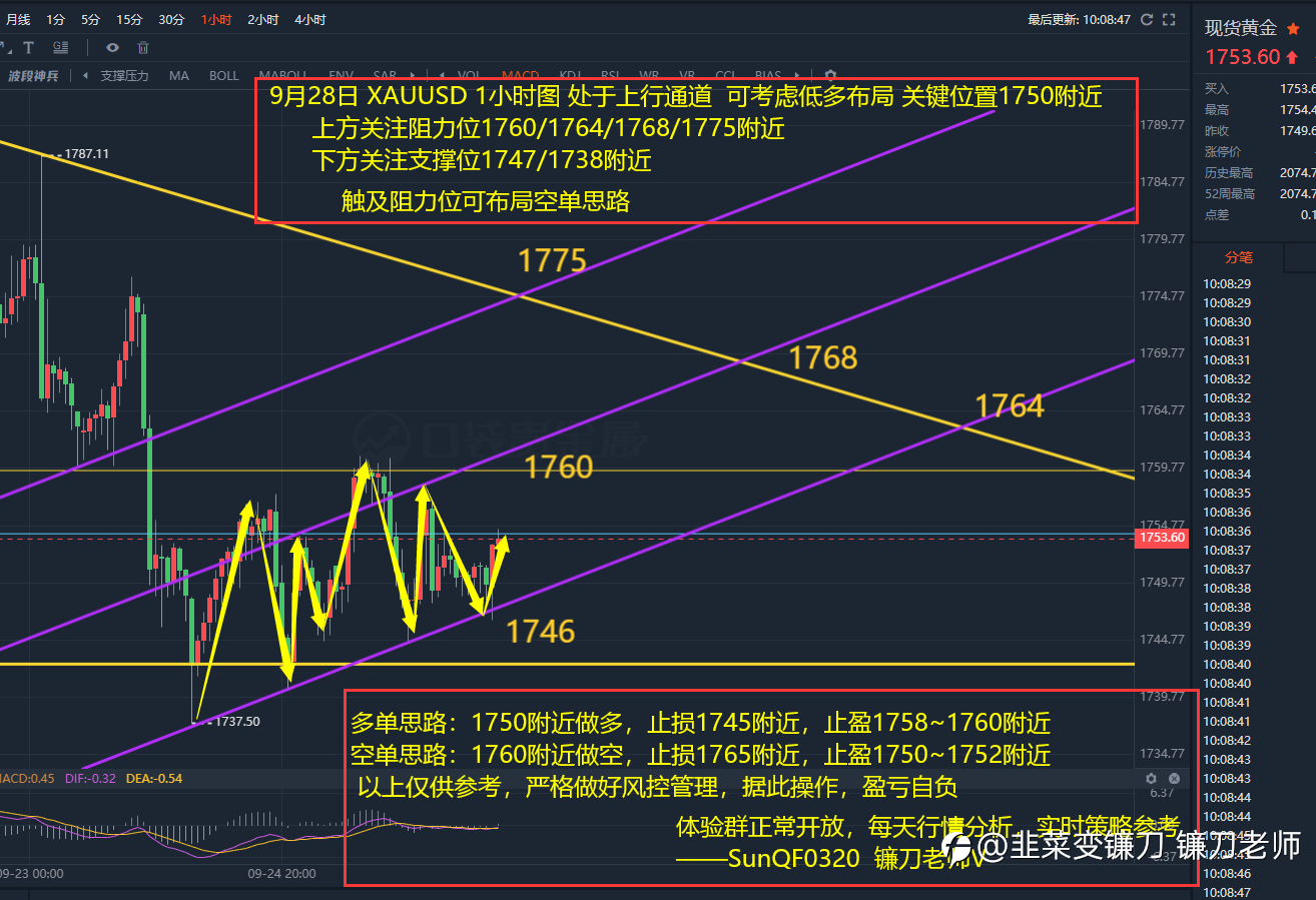 尽量支撑位做多,阻力位正常考虑空单布局思路,带好止损,用好减仓推保本损留底仓操作手法