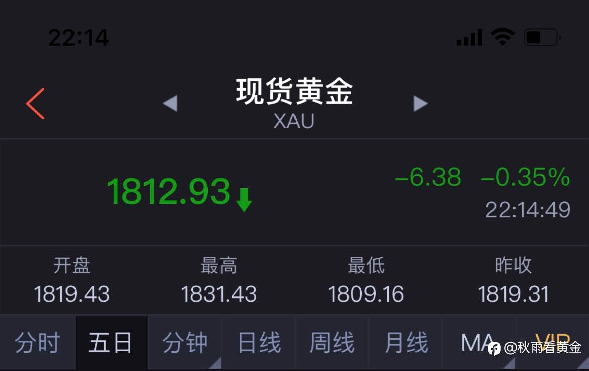 隔夜黄金强势上涨,强势拉升,强势冲出1815包围圈,直接抵达1822一线,多头全部止盈11