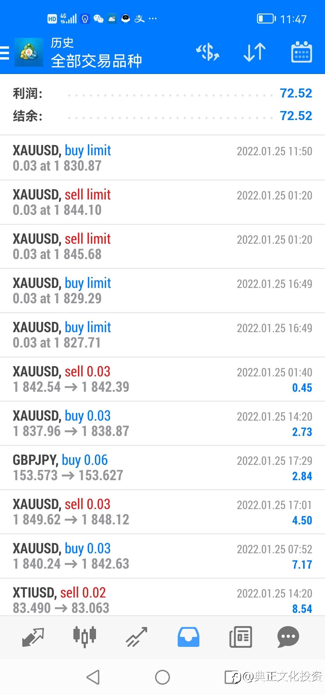 典正文化信号:自1月13号开始运行,本金500刀,截止2月4号合计盈利752.49美元,盈利比例为150.49%,仓位运行较低,资金回撤较小,手工交易,本周盈利比例为18.84%。合计在K站加fellow me吸引跟单资金共计20万美元左右,帮助客户已经盈利近二万美元,所有客户跟单均为盈利。欢迎朋友们交流指正