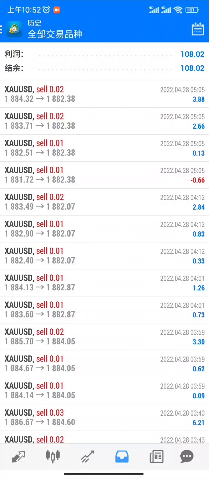 下午测试07服务器,所以暂停EA。截止目前:今日主账号的交易实况,027获利303.24美金;026获利59.18美金;145获利28.53美金。祝贺绑定跟单的投资朋友!可私聊拿观摩密码登录鉴别真伪!大家早点休息,剩下的交给EA[呲牙][呲牙]
