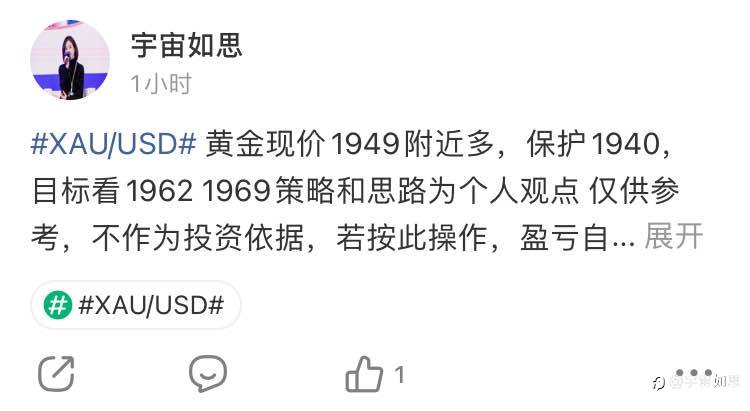 #XAU/USD# 黄金现价1955附近多,保护1947,目标看1969策略和思路为个人观点 仅供参考,不作为投资依据,若按此操作,盈亏自负,投资有风险,入市需谨慎】
