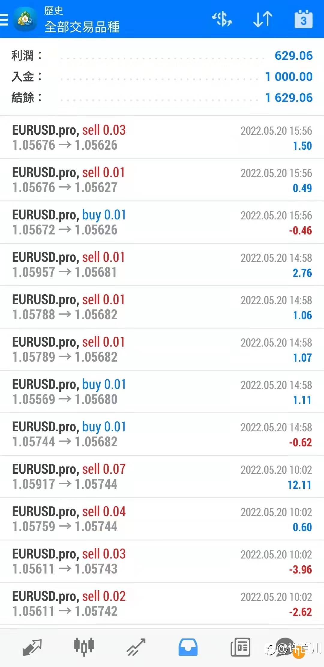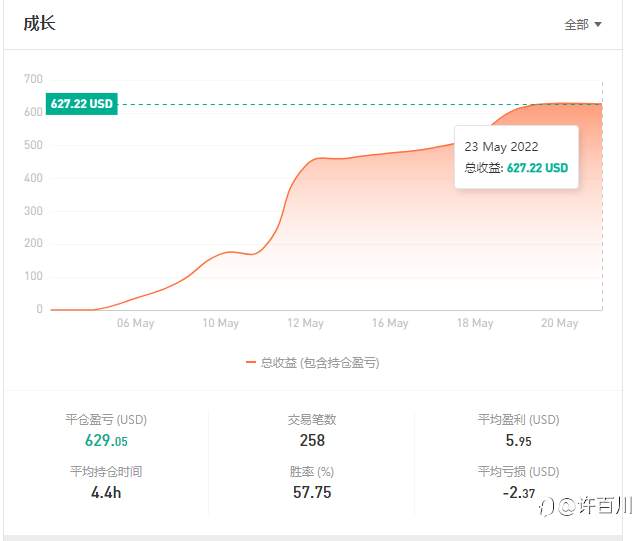 5月4日开始1000美金交易,经历了13个交易日至今,账户也成长了60%