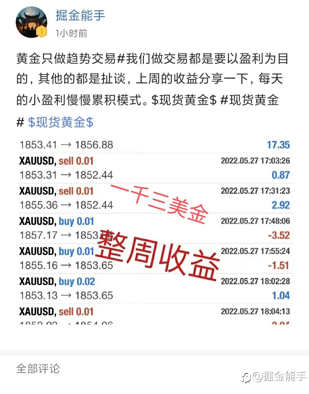 黄金只做趋势交易#行情每天都会有,只是看我们能不能抓住行情而已,不管是多多的资金,你做的方向不对就会导致亏损,小资金只要你有自己一个稳定的交易方式,稳健盈利不是问题,现在都是智能交易方式了$现货黄金$ #现货黄金#XAU/USD#