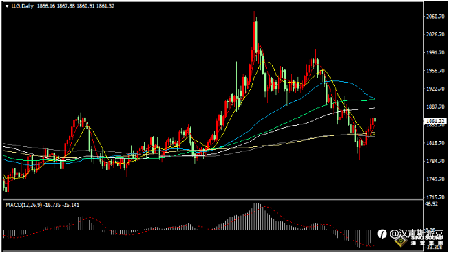 如金价在1840附近有效支撑时,短线做多,目标:1847-1850、1856、1860。如金价在1850附近有效受阻时,短线做空,目标:1843-1840、1836、1830。
