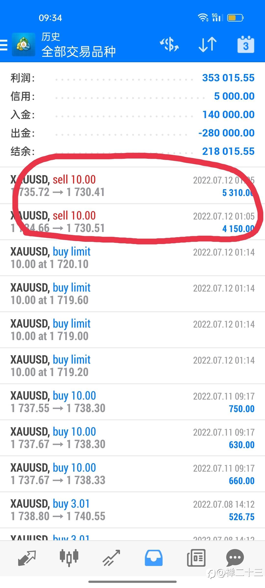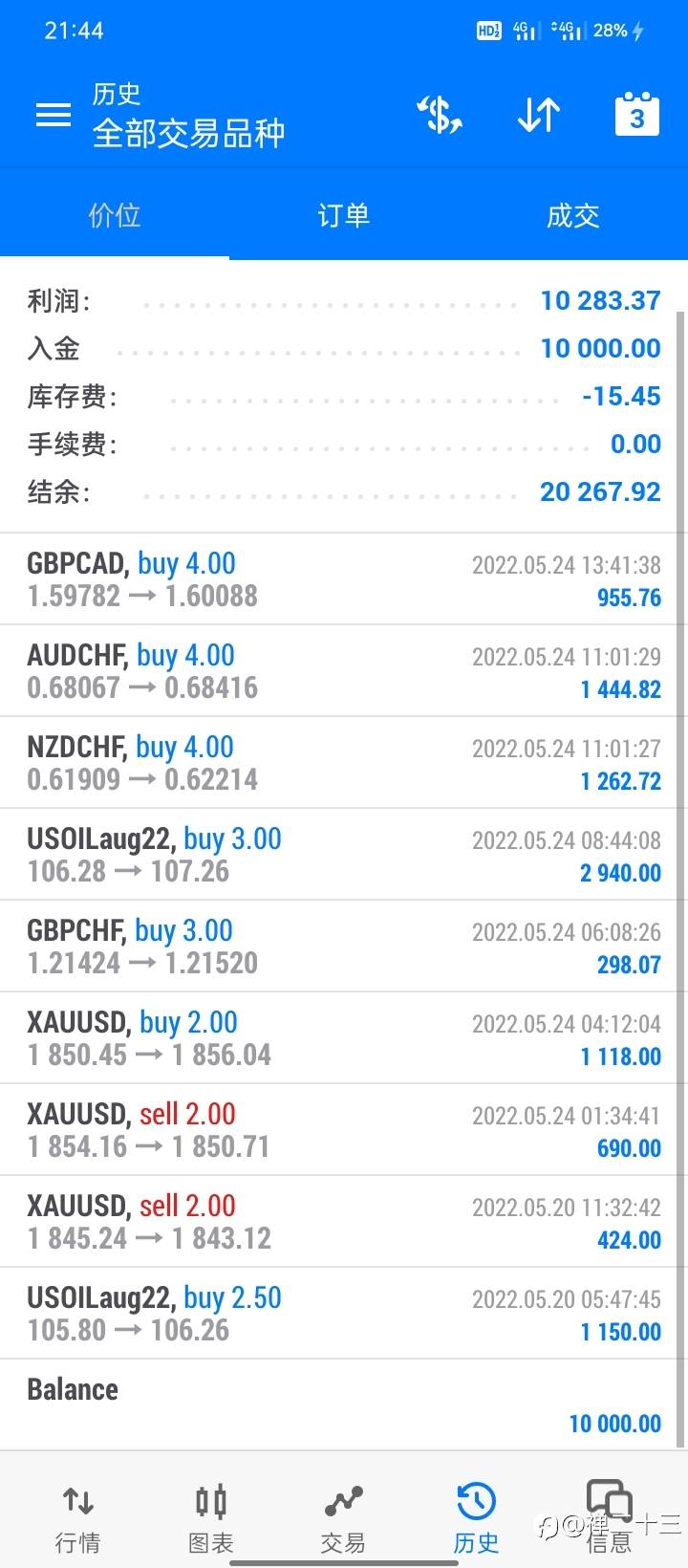 3月25号入金将近1.4万美元,单子做了这么几单,一共才做了40手。