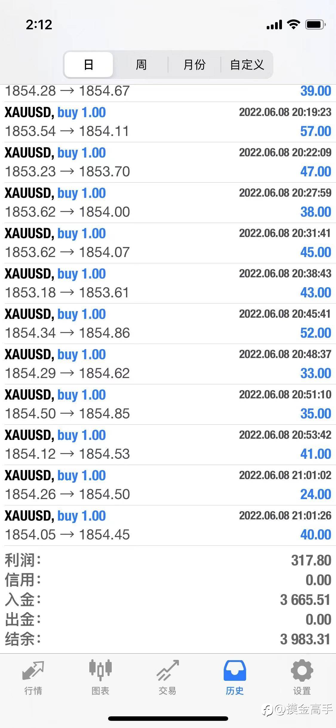 日常盈利。每天百分之10,提前休息了。晚安,铁汁们。