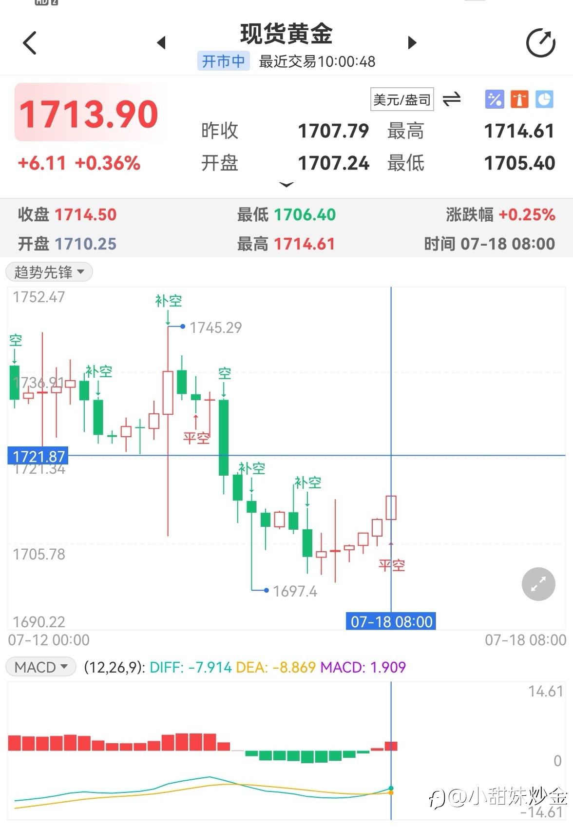 黄金1768附近多单 目标看1776附近收米