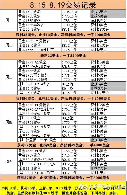 本周记录,收官结束,获利空间125美金,一手12500美金。