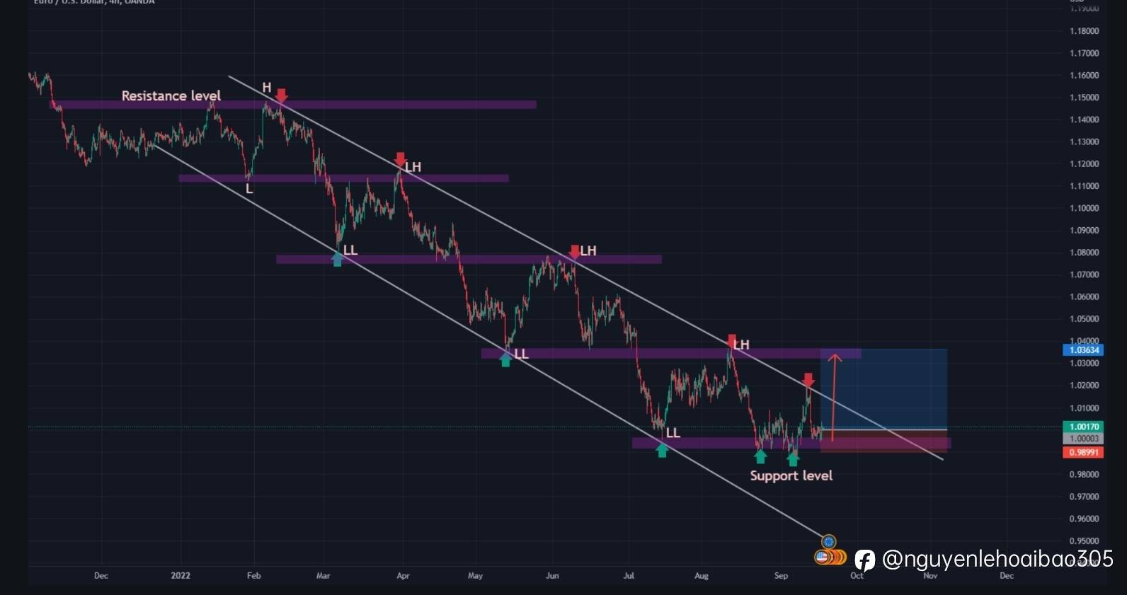 Đây là ý tưởng giao dịch EUR USD của tôi, kênh giảm dần đã tạo ra LL và LH và thị trường đã đạt đến khu vực LL, là mức hỗ trợ mà thị trường đã bật lên từ trước đó.