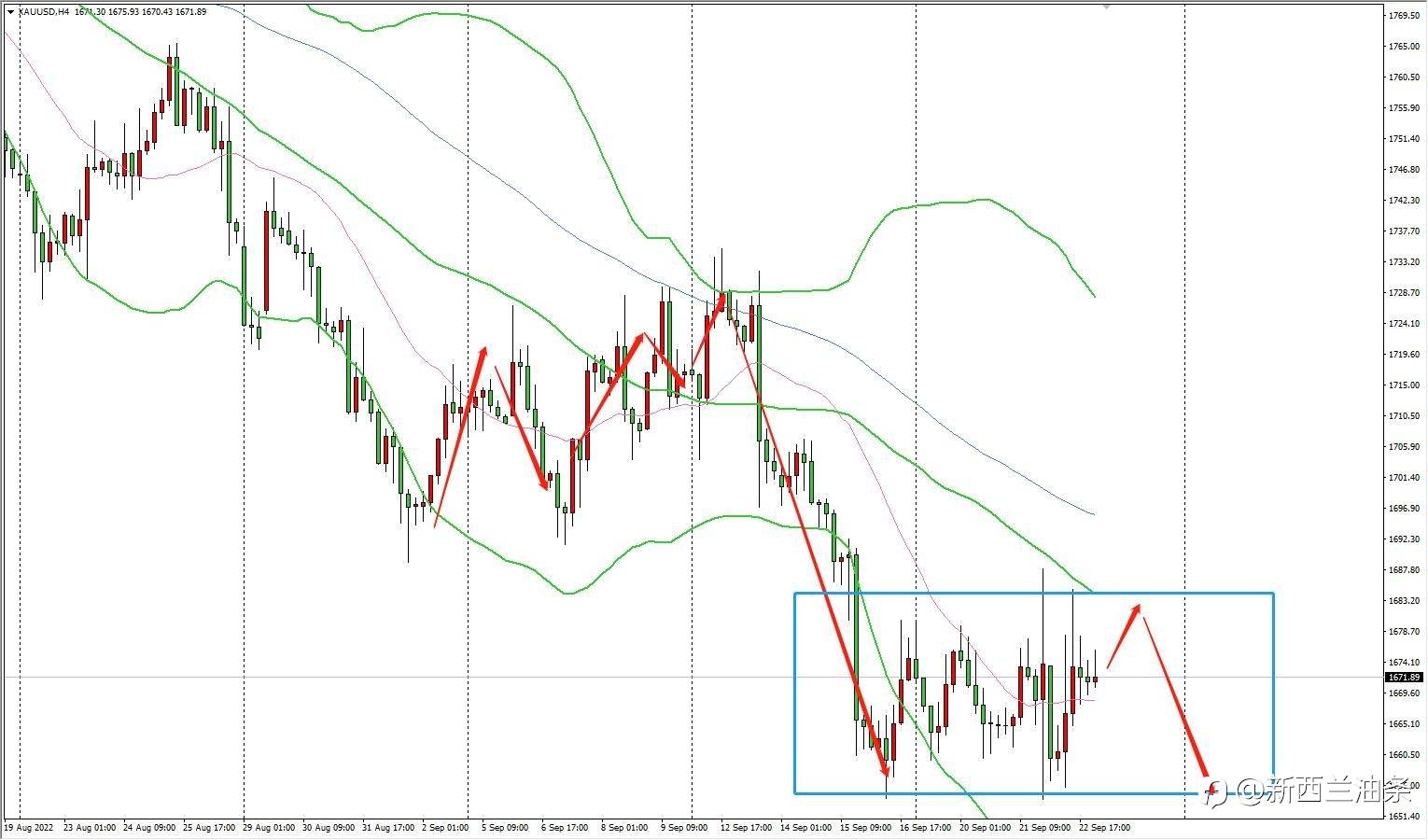 本月最后一个交易日,黄金以空头为主的观点固然不变,昨天最低在1641获得支撑。最后上行 20美金。看短期而言,可能继续上行,能不能成立反转就另当别论了。我的观点还是至少突破 1680,是站稳。而不是价格收了影线再下来。图里面,之前形成的震荡中枢非常重要,将来会成为多头反击的起点~