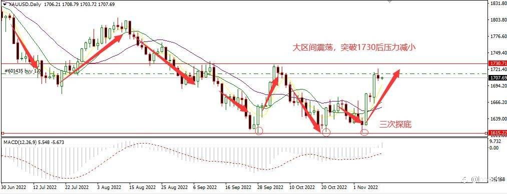 #XAU/USD# 亚盘期间多头延续昨日强势,现货黄金一举收复半月前丢失的1700关口。英镑反弹,制造业指数下降,使美元指数疲软不振,久被压制的黄金多头终于抓到机会反击,短线来看依然有上冲动能,操作上顺势而为,不可抱着死空思维和趋势做对。
