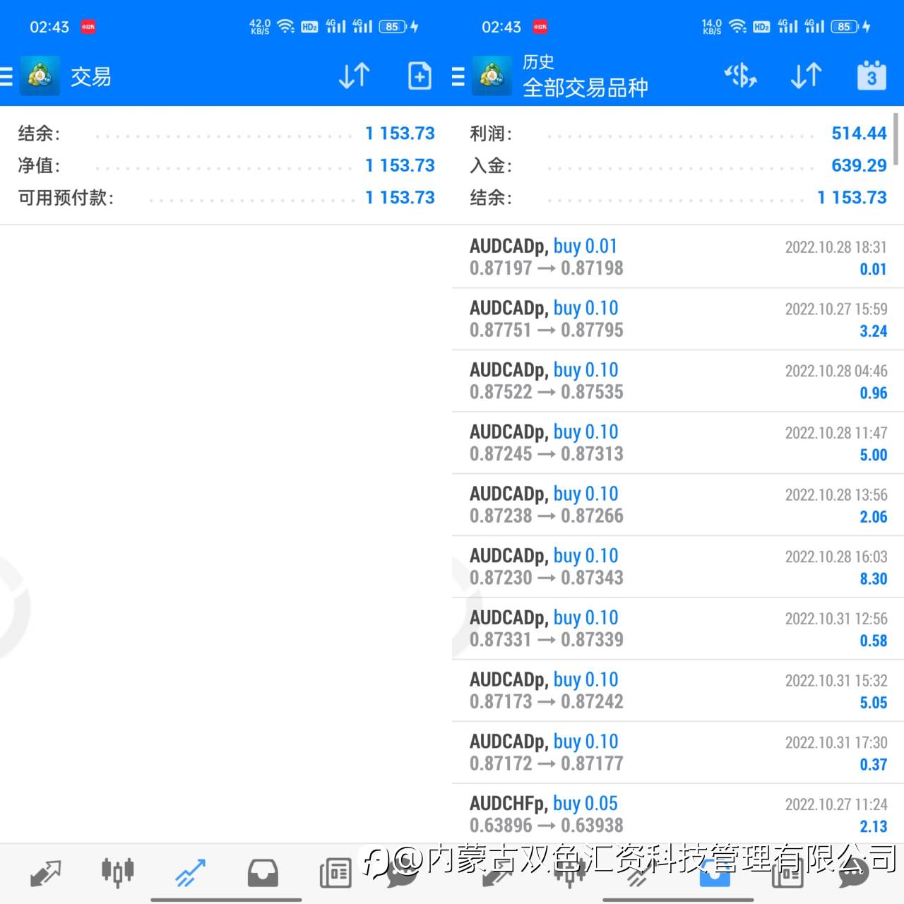 今日新增两个跟单账户,欧盘信号结束的很快,欢迎各位查阅账户。
