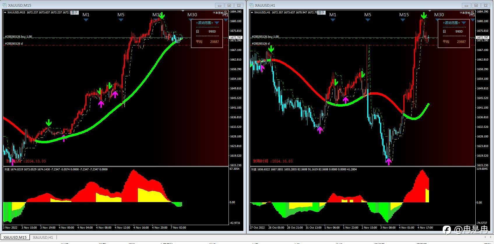 继续做多,止损放在红箭下方也就是1672