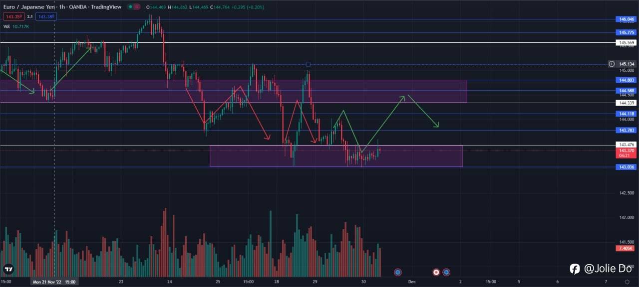 About EUR/JPY: in contrast to Gold, this pair had a quite fluctuation yesterday. It broke out the major support 144.33, went down to 143.78, now going up back to retest zone of 144.33-144.8. I don’t think it can go over this zone, bearish market in short term is my opinion.