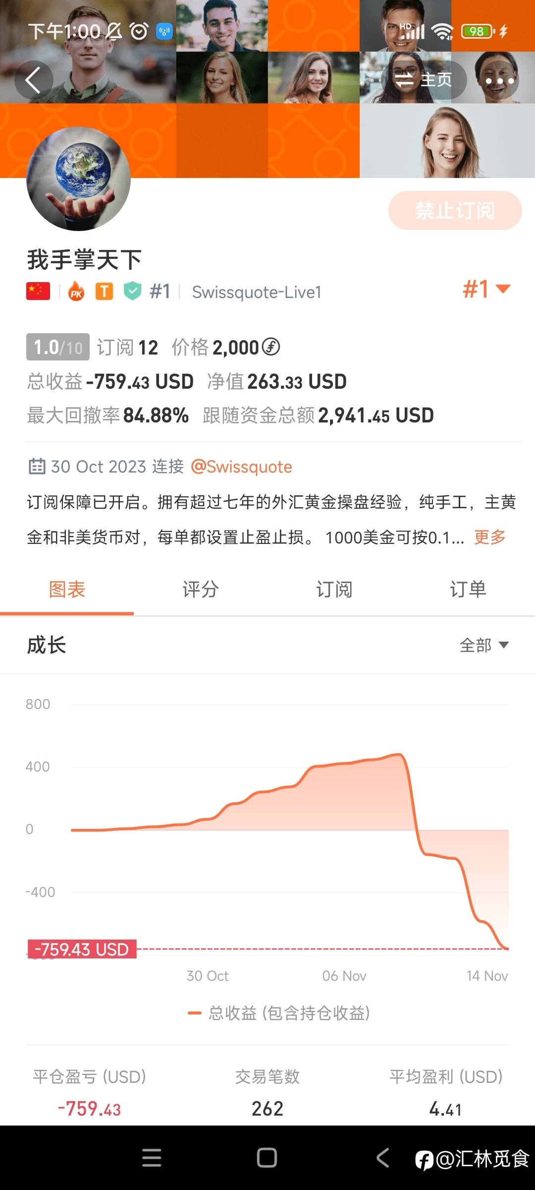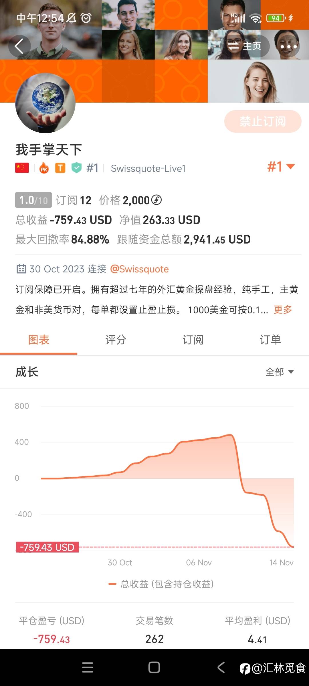 社区全网只有“歃血为盟”的交易记录让我佩服,他是一个理性的目光长远的有格局的交易员。大部分人的单目标都是十个八个点(按照黄金一美元算一个点),而他的单目标都是50-250个点的单。这是我理论上需要做到的事情,而他却实际上做到了。真的让人佩服至极!