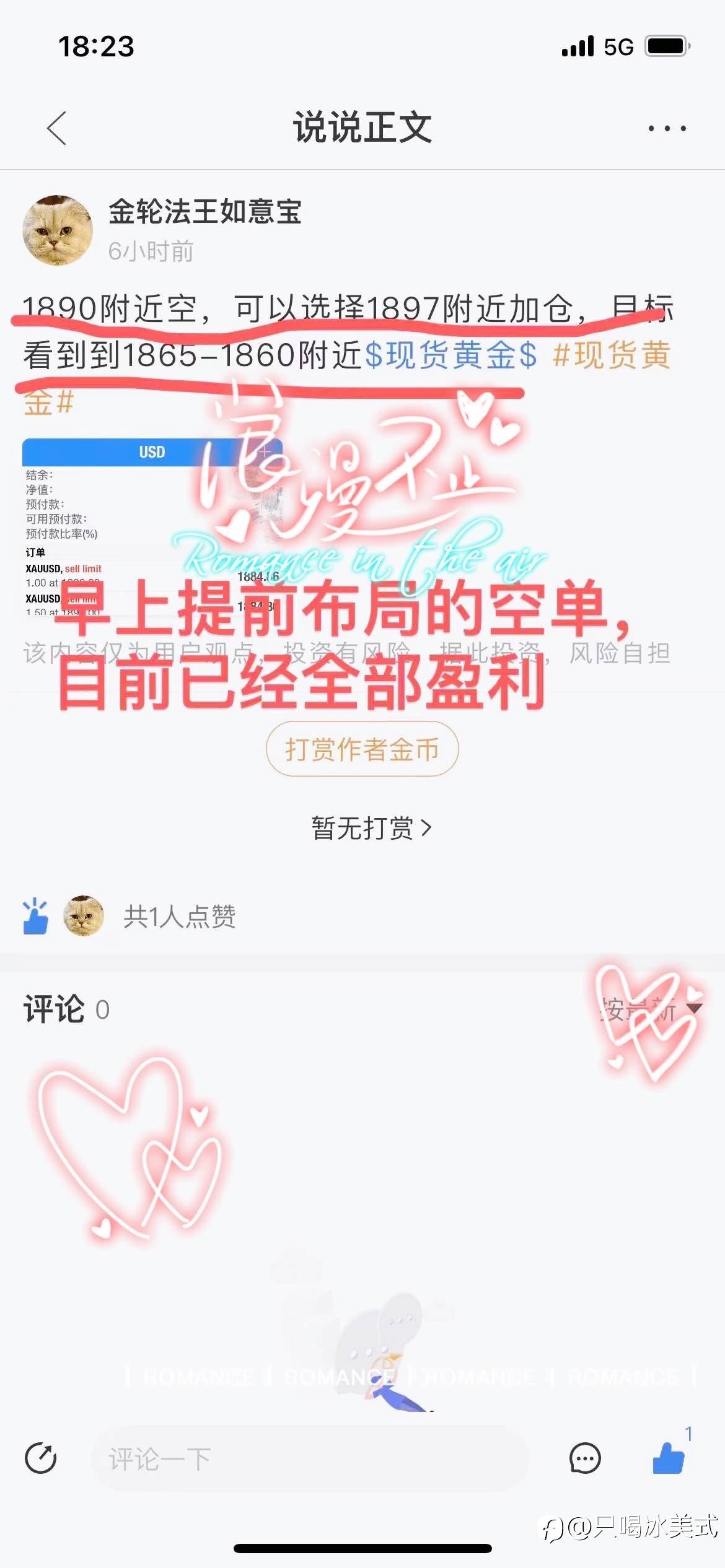 当前的行情属于M顶形态,今天可能会重回到1890附近,回调1890就接多单上车。