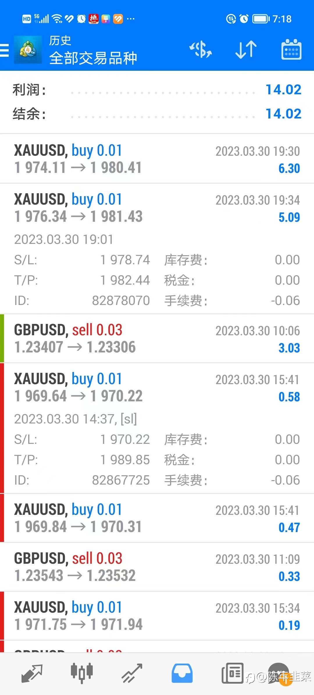 3月27-4月1日当周结束,4日盈利一日亏损,当周收益6%