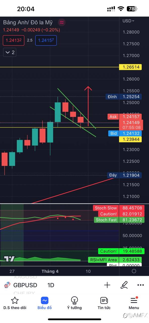 GBPUSD đi theo mẫu hình cờ tăng ở khung h4 và D 3 nến đỏ nằm trong nến xanh trước đó . sẽ tiếp tục tăng