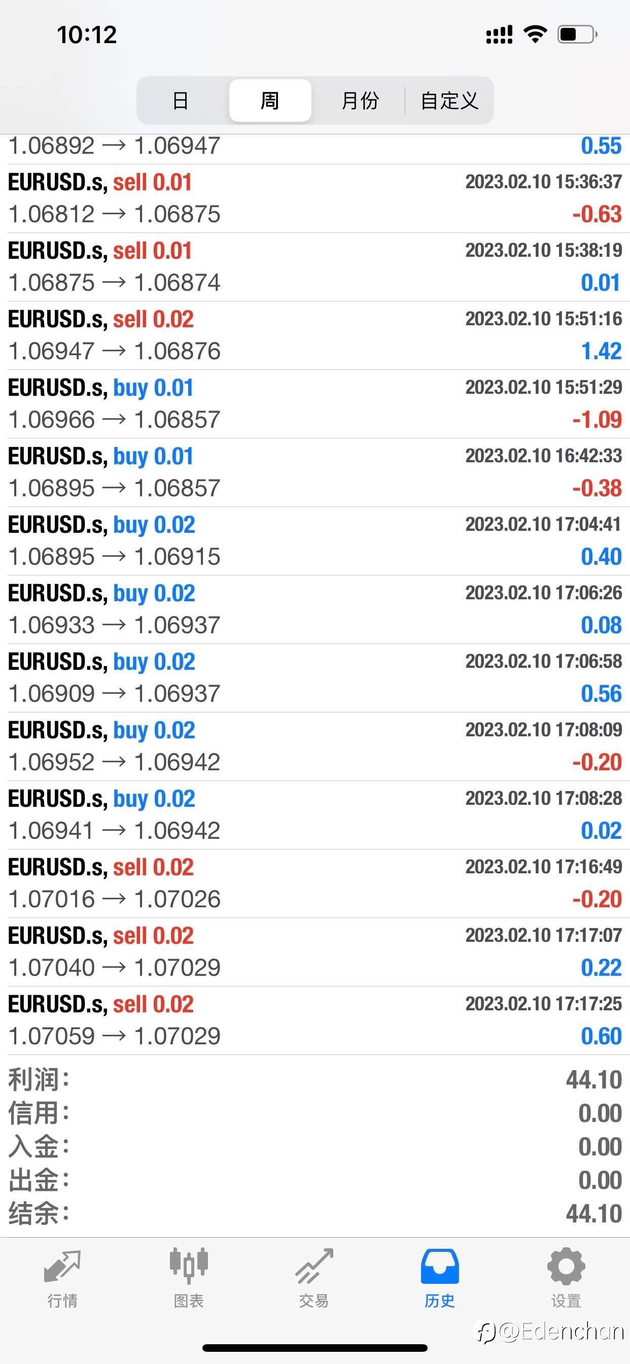 专注EURUSD,EA+人工短线,每天清仓,不持仓过夜,2000美金账户周四盈利10.44美金,收益率0.52% 💰💰💰