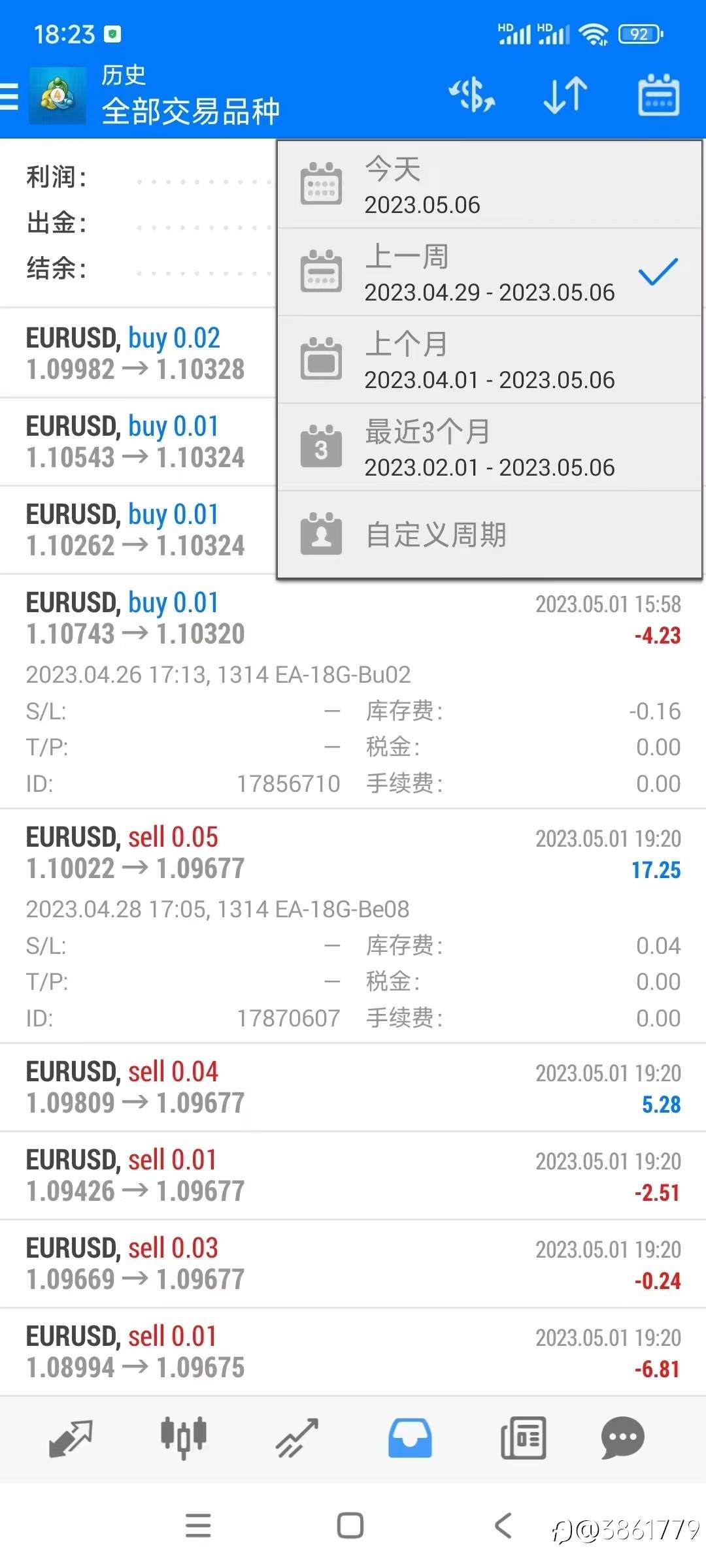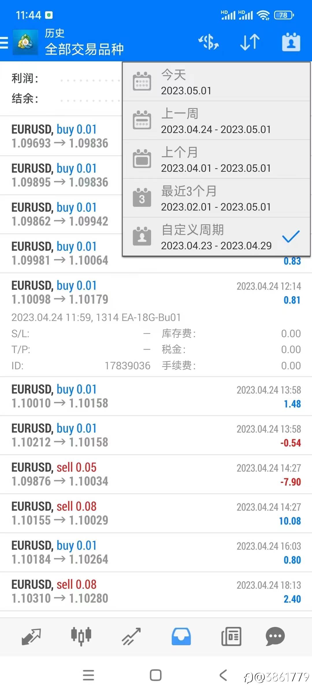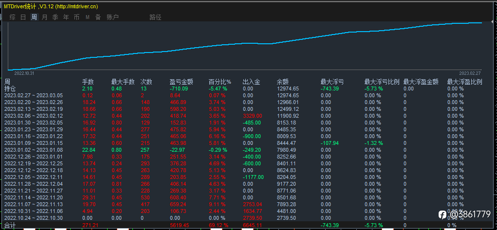 欧美EA ,3000美金账户,上周交易1.8手,盈利2.07%