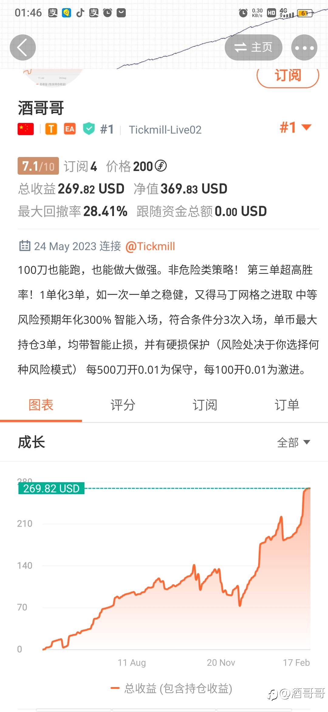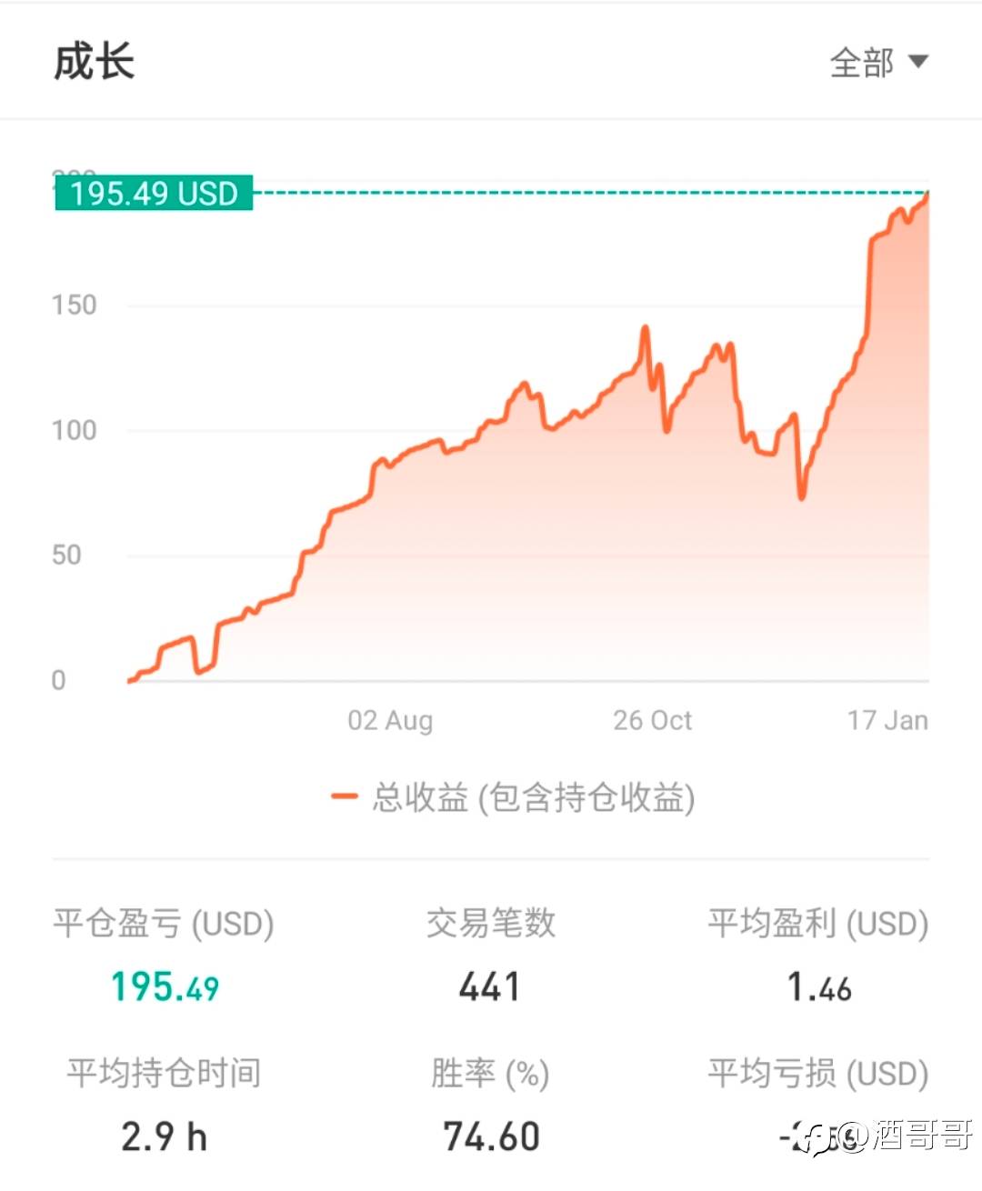 可以用概率学和统计学的角度,品读她的历史,验证我的现在。用她的逻辑,我们的运气,去展望我们的未来。 群里大神们一天翻倍一月10倍,不,我只需要每月1%,但你得给我足够时间时间。现在51%,即使有回撤,也是另一种满足。让我们展望未来吧。