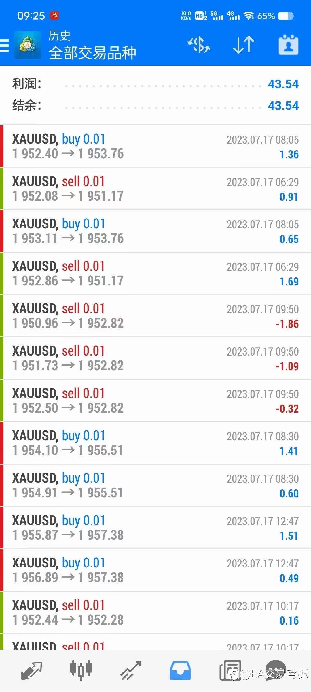 #XAU/USD# 昨日ea低频黄金数据,双向对冲,对冲优势涨跌均可获利离场,0.01开单,最大总手数不超过1手,稳健型低频策略。