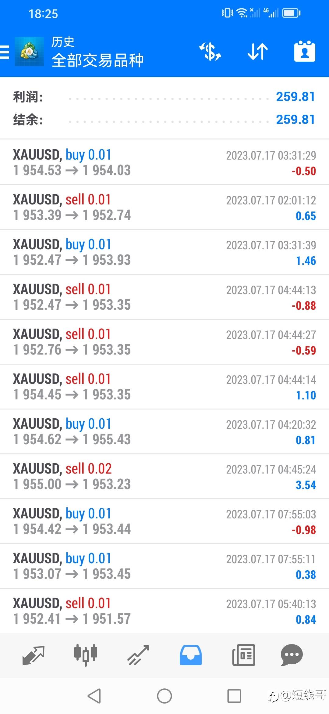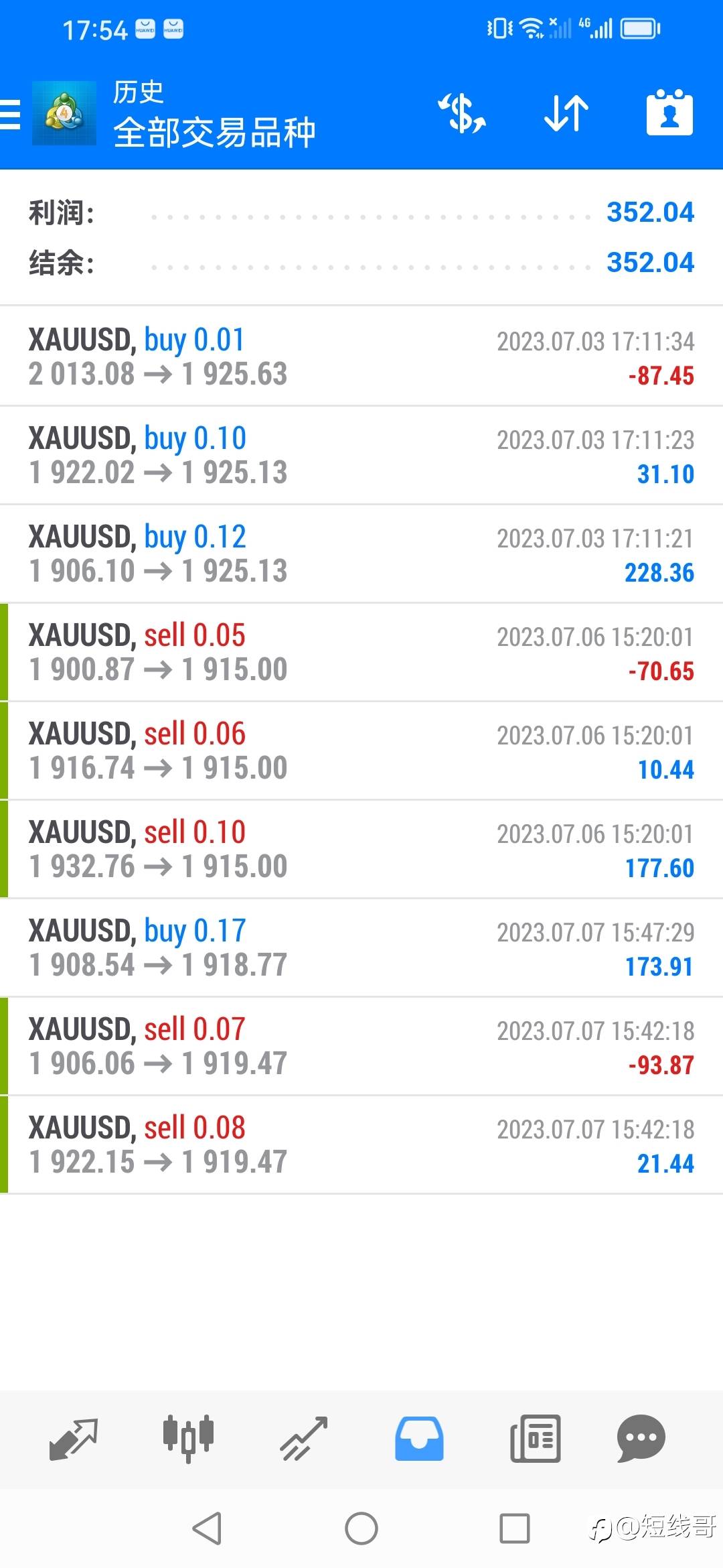 7月30日超短线账户交易记录(上周190美金)