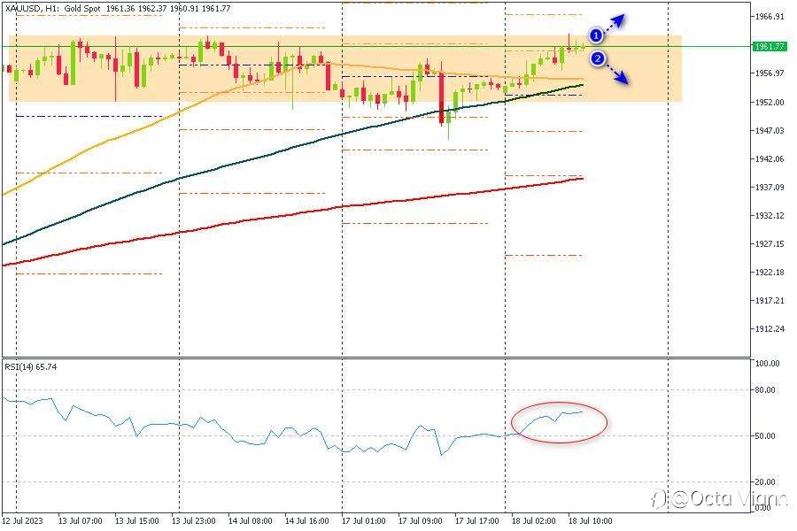 Emas pada 1956 menunjukkan sinyal naik. Saran transaksi *BUY Limit* Emas di 1952 - 1954 dengan target ke 1957 - 1960 dengan level stop 1948.