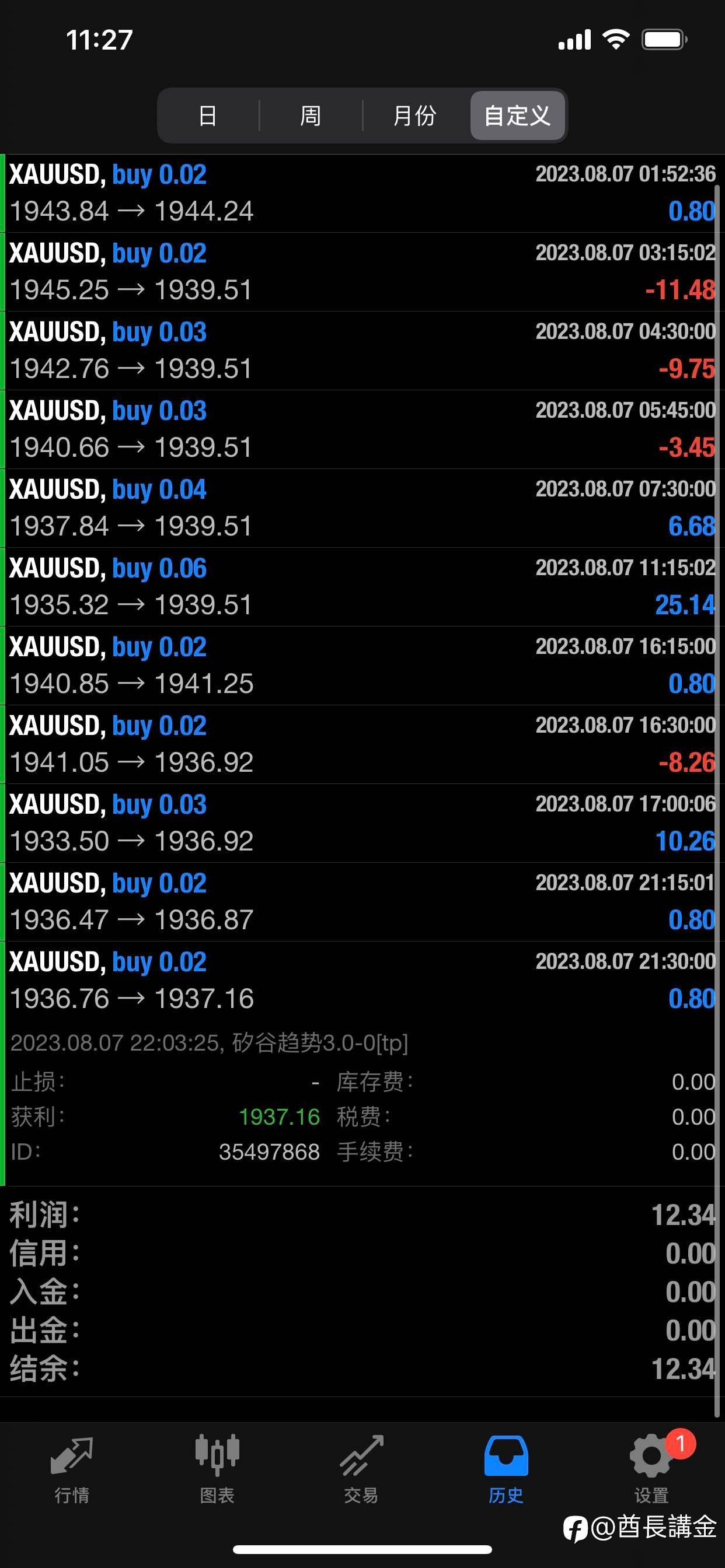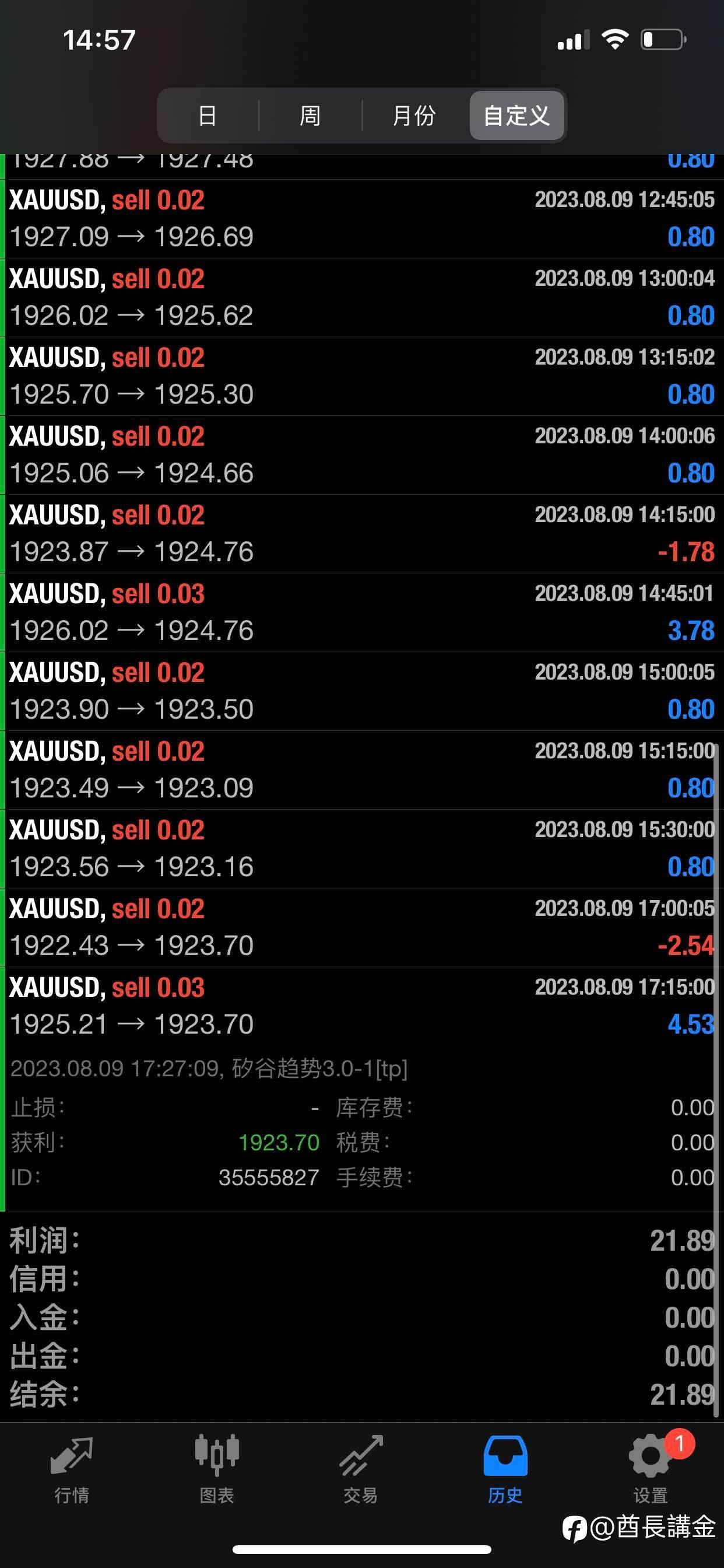 昨晚黄金价格下破1885低点,睡得早忘了平仓。