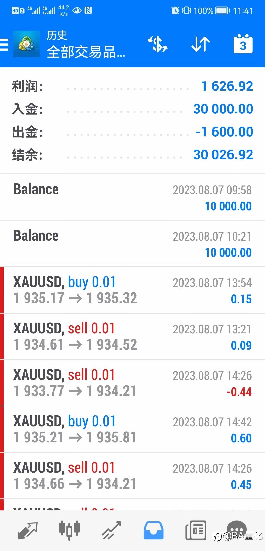 昨日445信号源盈利结果,手工策略1800美金盈利#XAU/USD#
