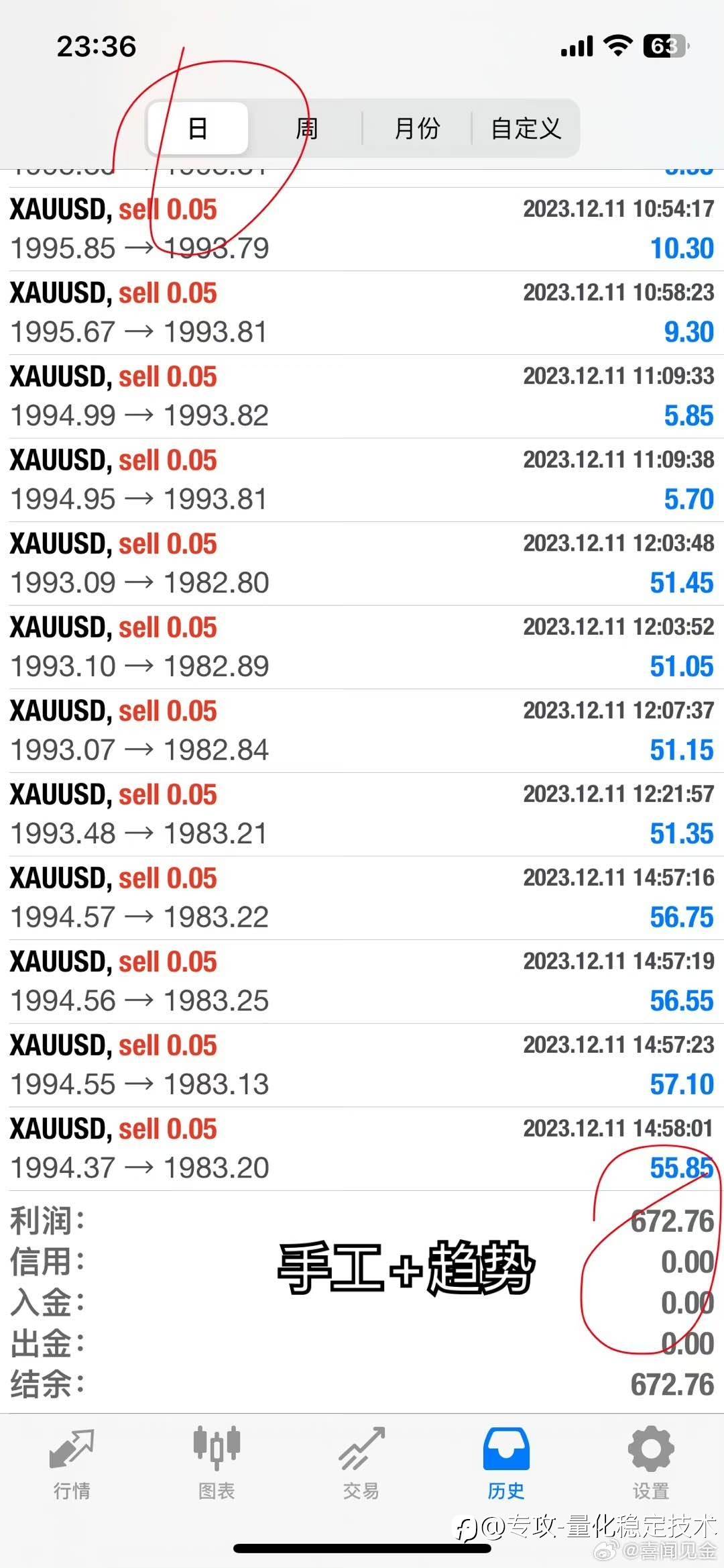 1️⃣黄金纯纯手~工,目前总收13346U