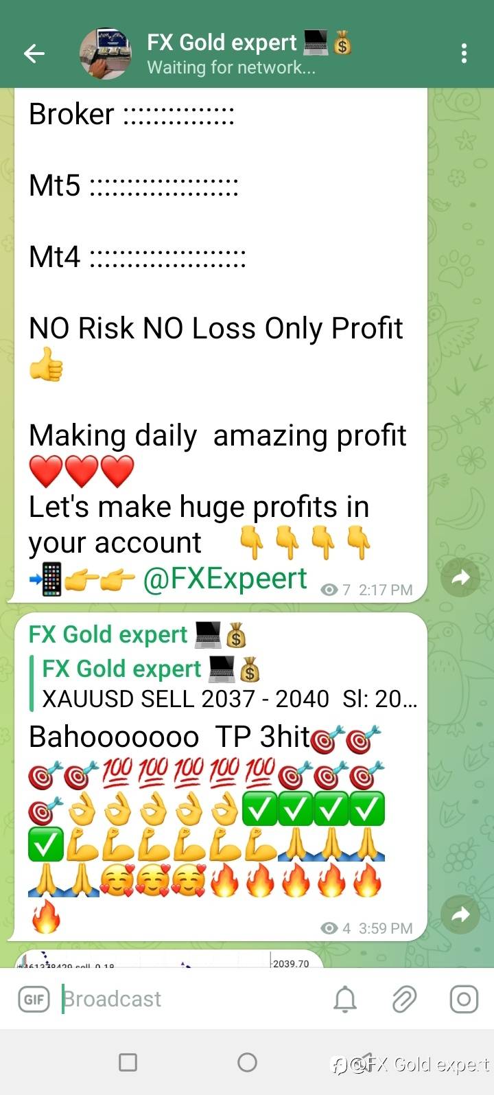 You can join our account management service If you want to make profit perday Join that service It is so profitable specially for people who have less experience. 1) 50/50 Profit share daily basis 2) Anybroker / mt4,mt5 3) Full Time work 7/24 4) 80% growth in day 5) no cost / 6) minimum 500$ balance Contact @FXExpeert
