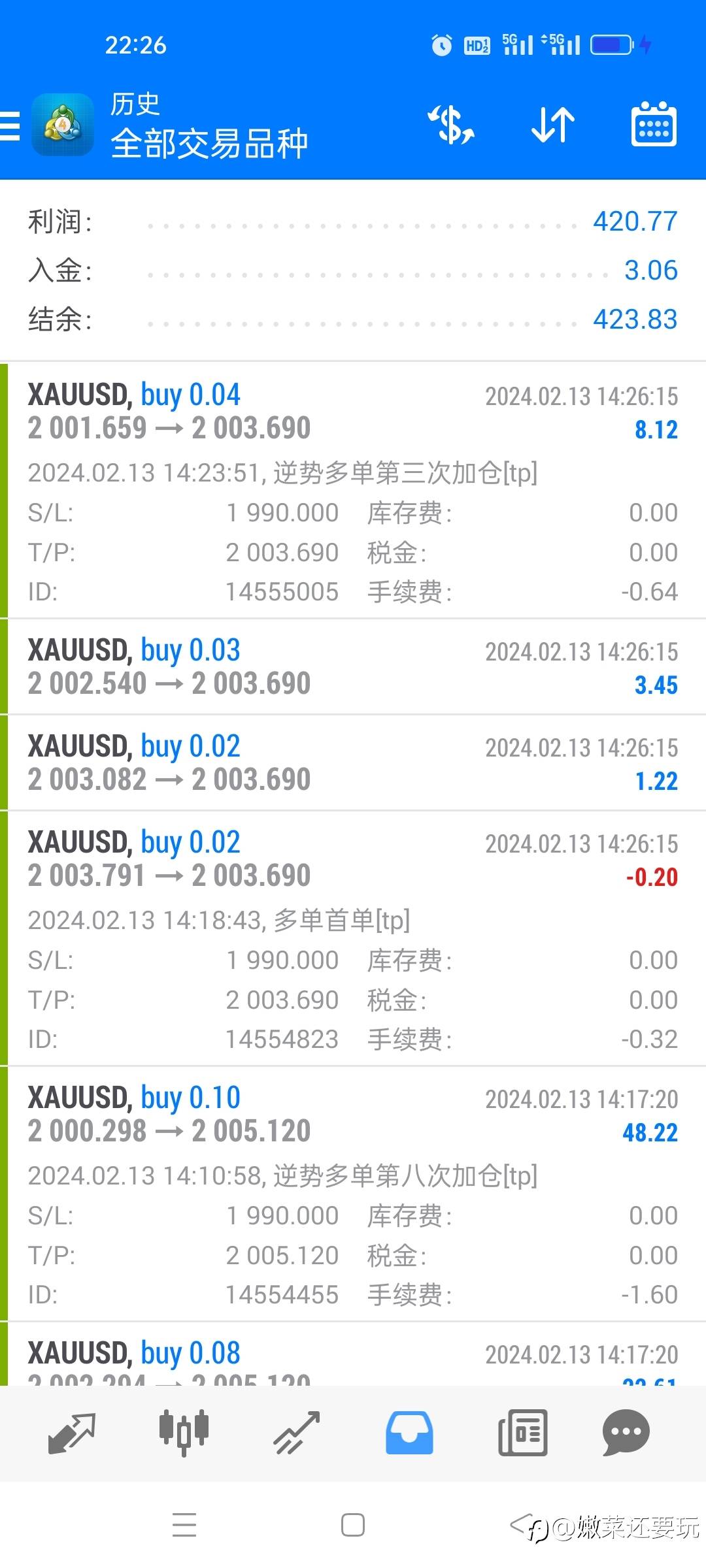 本来数据前赚了155美元,刚才进了多单,止损了,倒亏35刀。本周总体来说,还算可以,程序调试的比较平衡,