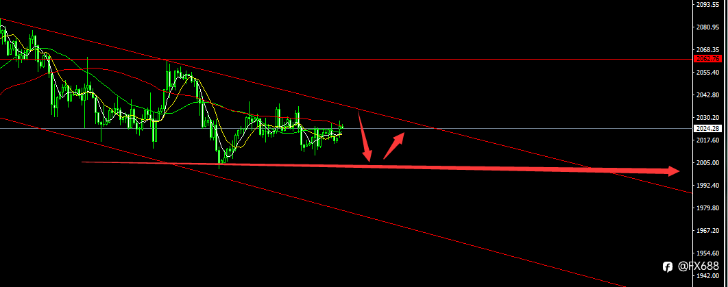 2024.02.20周二 黄金目前处于震荡上行的状态,日内选择高抛低吸的策略去布局即可,做空关注上方2020-2025区间位置。做多关注2010-2005区间位置。