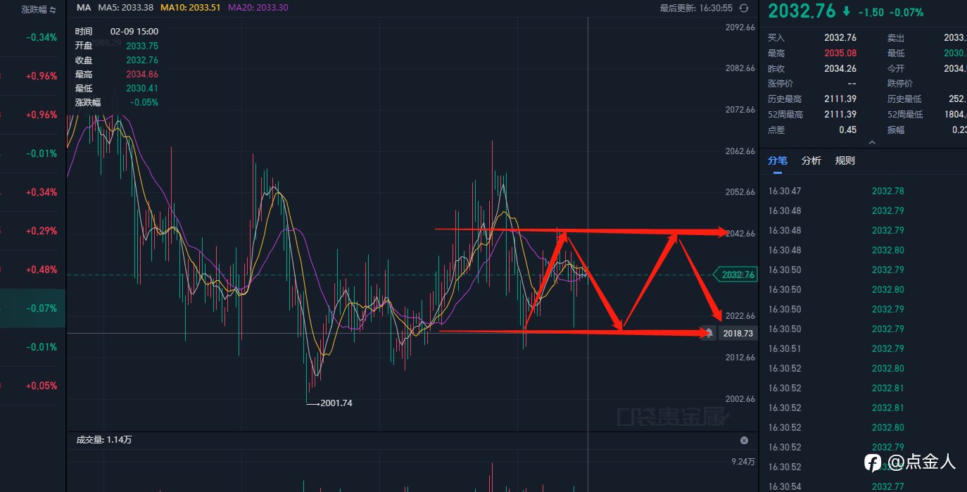 黄金周线图给出了k线,macd双向指标看涨的信号,而日线图、H4则是看跌信号,这种看似矛盾信号,正意味着大起大落的走向。再加上本周金价存在主力上下洗盘现象,价格多次出现横盘新低新高后再进行上下快速拉升,分级线图出现有意思的水平线现象,这是典型的大盘抛吸操作,不构成正常的金价走势,因此下周操作上仍是只做趋势短线跟单,减少持仓量,待调整充分后跟上持仓量。1.空单思路:反弹至2176-2180做空,止损2185,看2155附近$现货黄金$ ;2.多单思路:如下破2160,在2156附近做多,止损2150,看2175