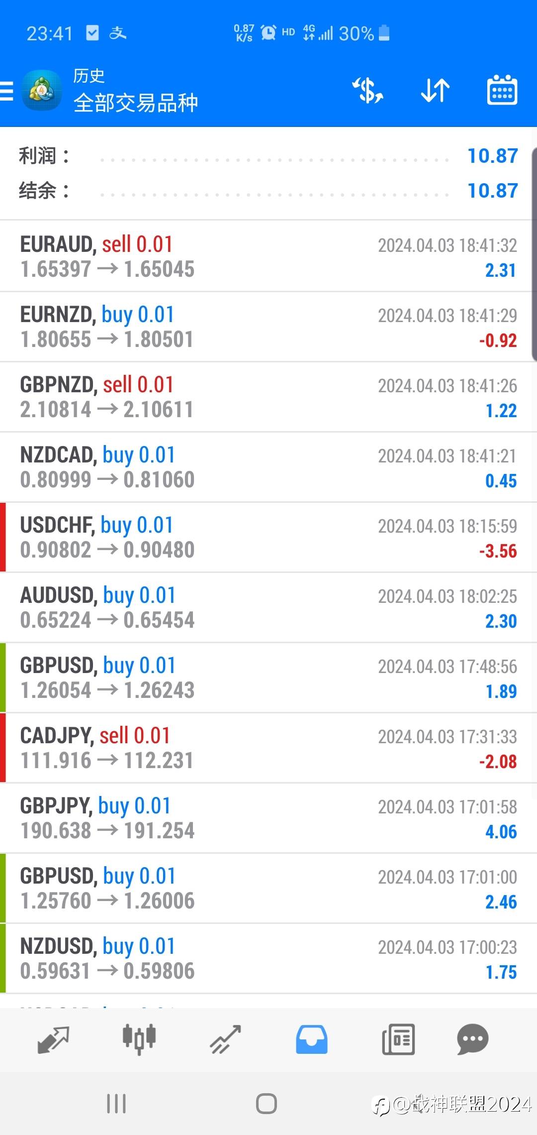 500美金起号,两天收益13美金,不加仓,不扛单,单单止损,一单一结策略。